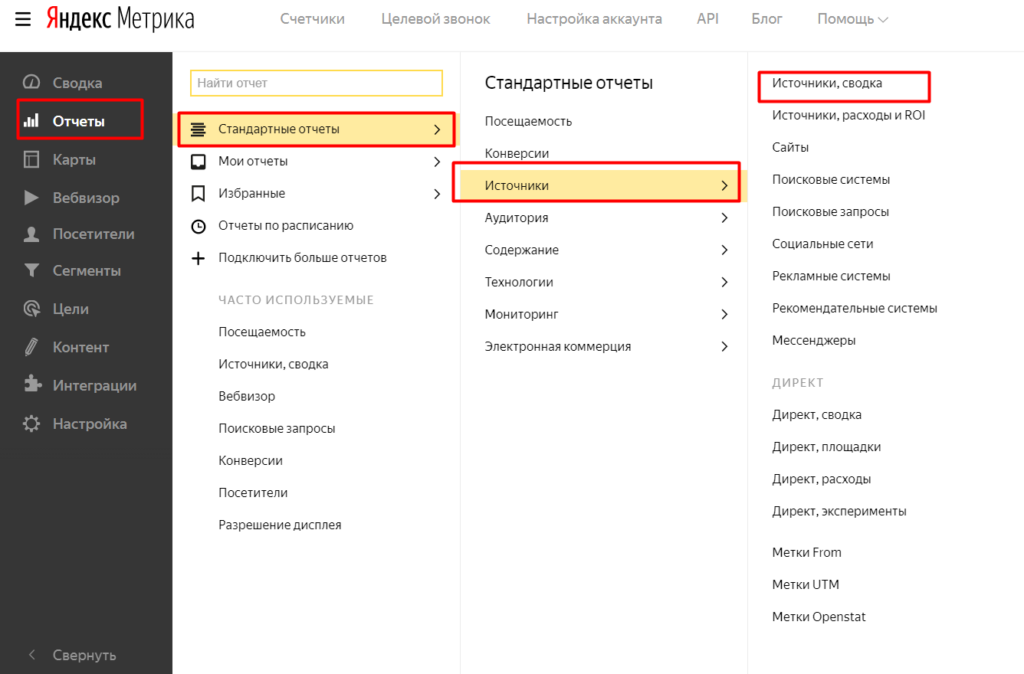 Просмотр статистики по прямым заходам доступен в отчете «Источники, сводка» Яндекс.Метрики.