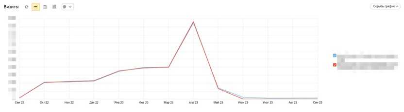 При этом роботный трафик на отдельные страницы ушел не сразу, даже несмотря на то, что одна из них выдавала ошибку 404. Он снижался в течение месяца и постепенно ушел в ноль. Вероятно, «нагульщик» ботов понял, что его усилия бесполезны, и остановил накрутку.