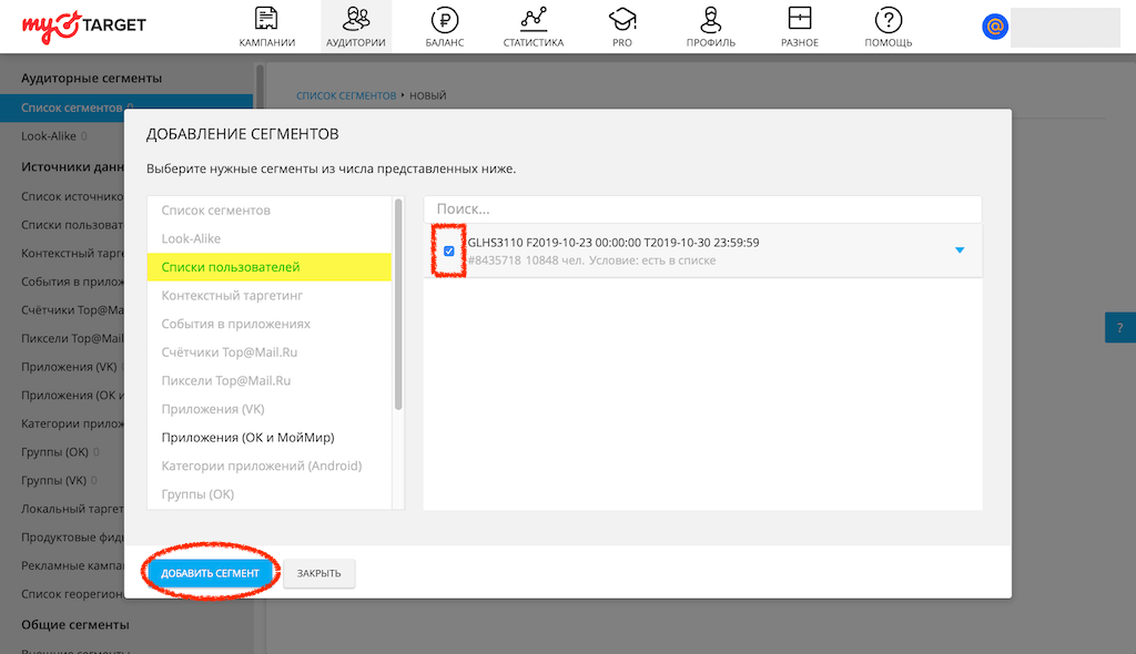 Настройка целевой аудитории в MyTarget