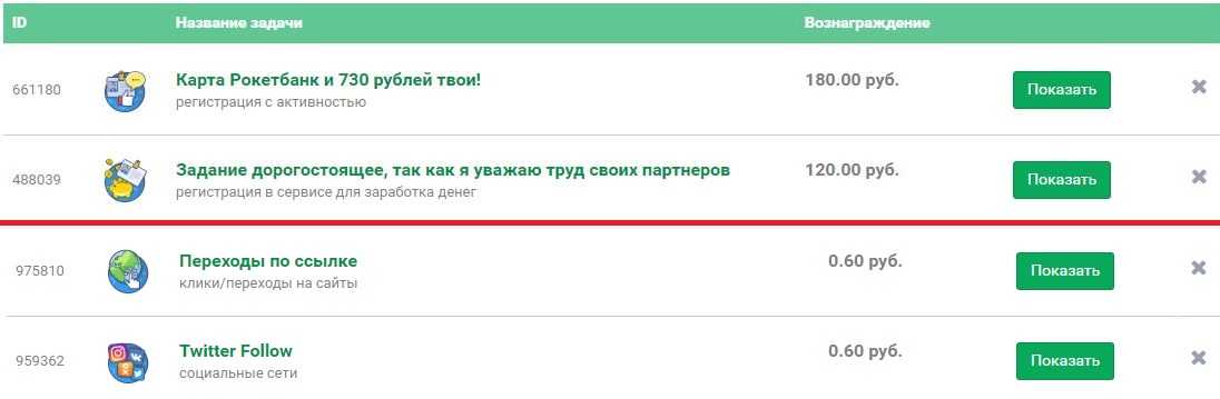 В целом расценки здесь немного выше, чем на буксах или почтовиках. Никаких копеечных заданий по 2-20 копеек. Минимальная оплата – от 60 копеек за действие.