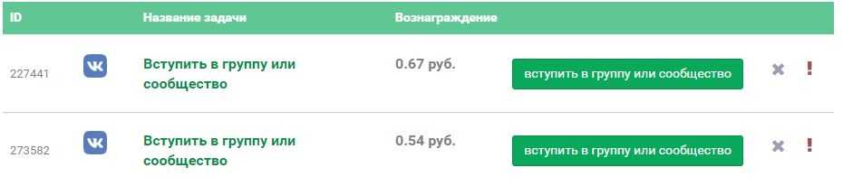 Для выполнения нажмите напротив понравившегося задания зеленую кнопку. Например, «вступить в группу или сообщество». Вас автоматически перекинет на страницу, где нужно выполнить нужное действие. Сделайте, что написано в задаче.