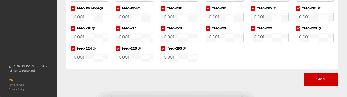 - Наверно лучше все-таки сначала лить по основной базе Push.House без подключения фидов. Да, трафик там подороже и его меньше по объему, но так можно будет сэкономить, как мне кажется. Либо поставить на фиды минимальную ставку в 0.0001. Трафик они дают очень бодро.