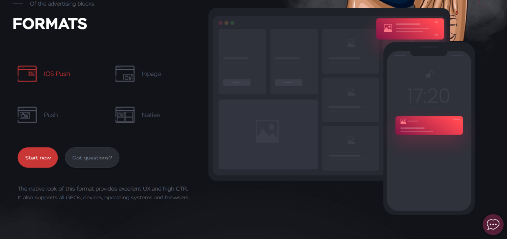 - Поставляет только качественный трафик – он добывается благодаря собственной партнерской сети по монетизации пуш подписок — Partners.house