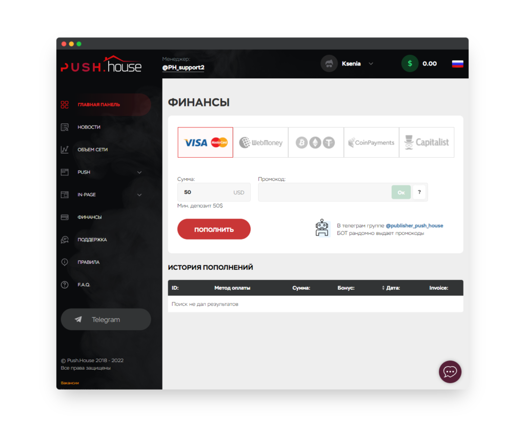 Приспосабливаясь к разнообразным платежным предпочтениям, Push House устраняет барьеры и обеспечивает бесперебойную рекламу как для рекламодателей, так и для издателей.