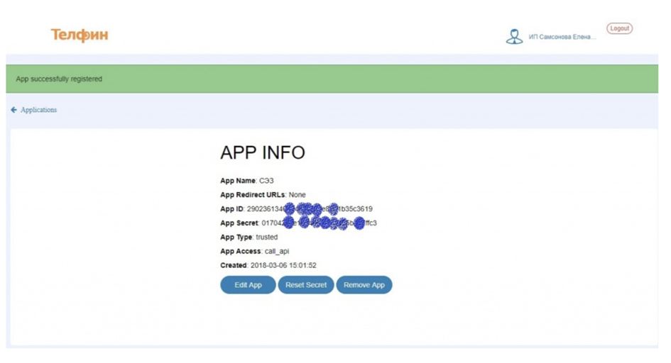 Поехали Телефония — Подключенная телефония — выберите Telfin — Добавить — зарегистрируйте APP ID и APP Secret