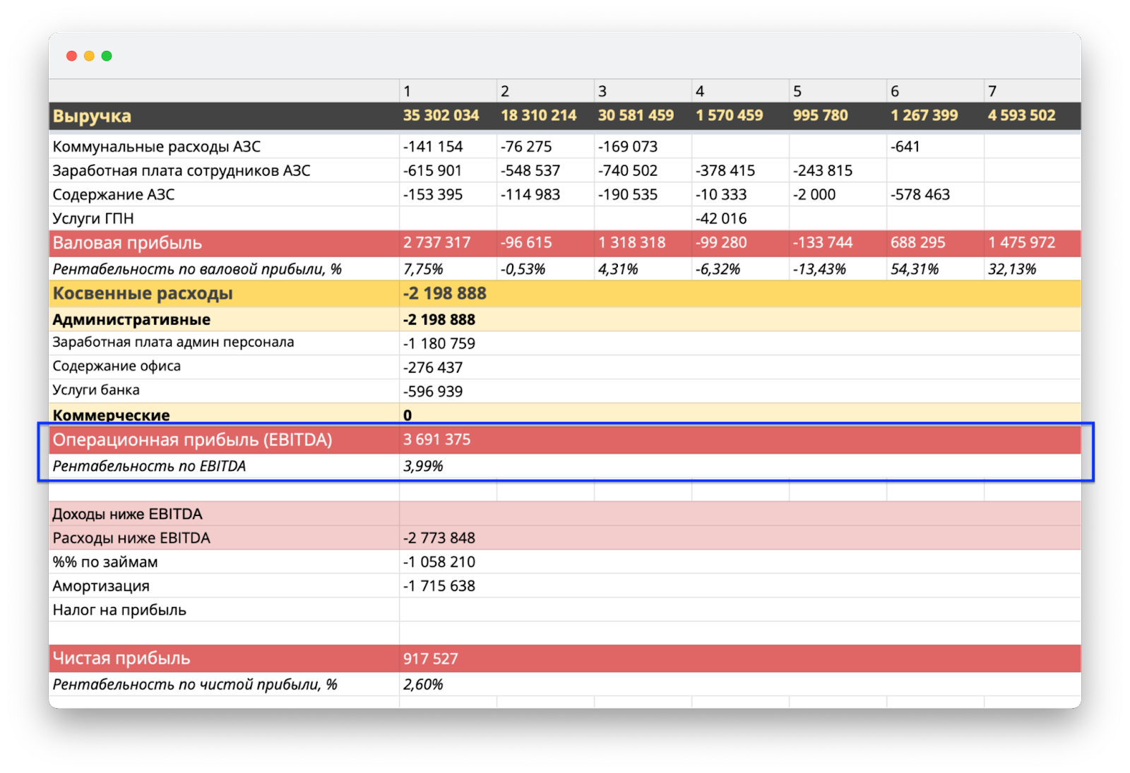 | EBITDA (Earnings before interest, taxes, depreciation and amortization) — это прибыль до вычета процентов по кредитам и займам, налогов и амортизации. Она показывает, сколько компания заработала на своей основной деятельности. По EBITDA можно сравнивать компании в одной отрасли — и это будет правильнее, чем сравнение по чистой прибыли. Почему так, рассказали в статье: https://noboring-finance.ru/gazeta/ebitda |