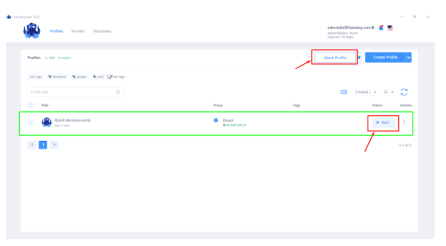 После авторизации вы увидите вот такую панель. Начнем с профилей. Нажмите «Профили», а затем «Быстрый профиль». Сделайте это, и они создадут для вас профиль за считанные секунды.
