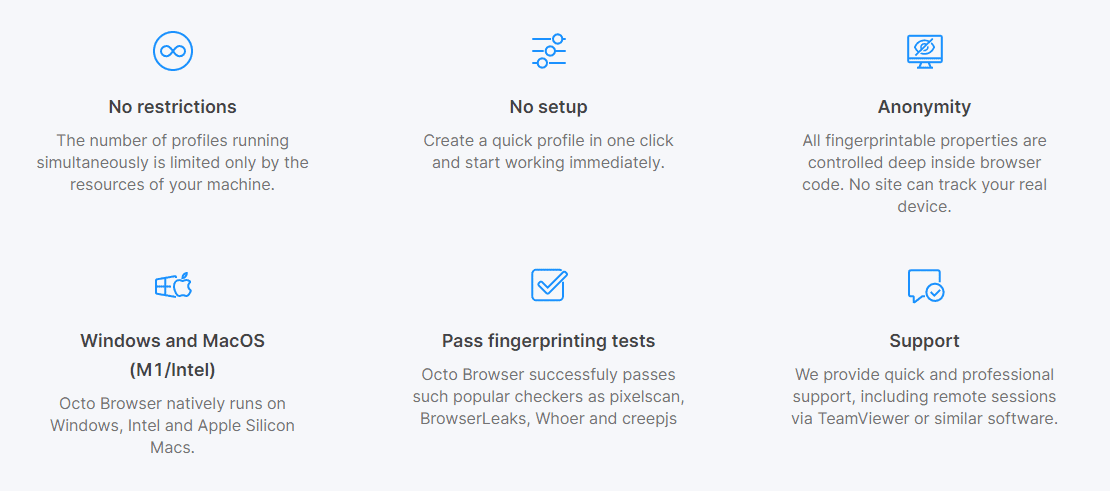 В целом, Octo Browser — отличный вариант для тех, кто ищет простой в использовании браузер с защитой от обнаружения, обеспечивающий безопасность и производительность.