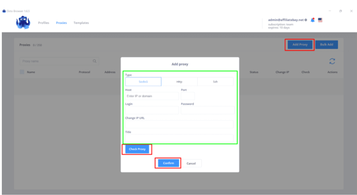 Заполните данные, нажмите «Проверить прокси», чтобы проверить, а затем нажмите «Подтвердить».