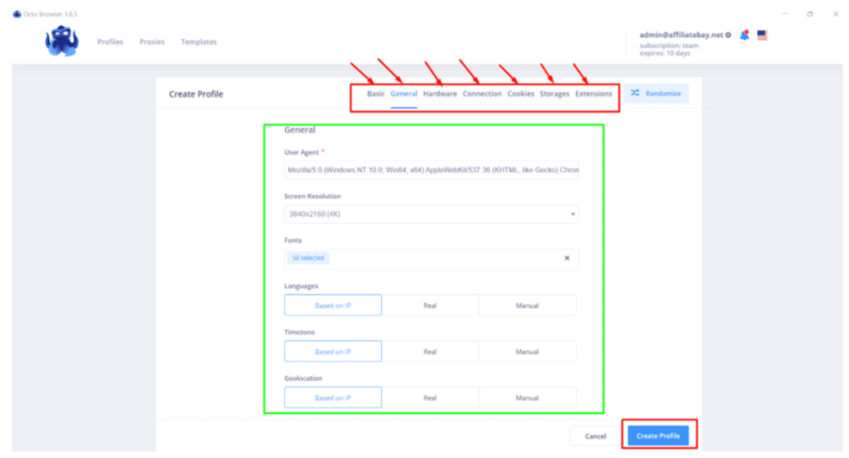 Octo Browser lets you create “profiles.” When you browse the web normally, websites create a “profile” of you. This includes your OS, device, screen size, and many other such details. This is how websites track you.