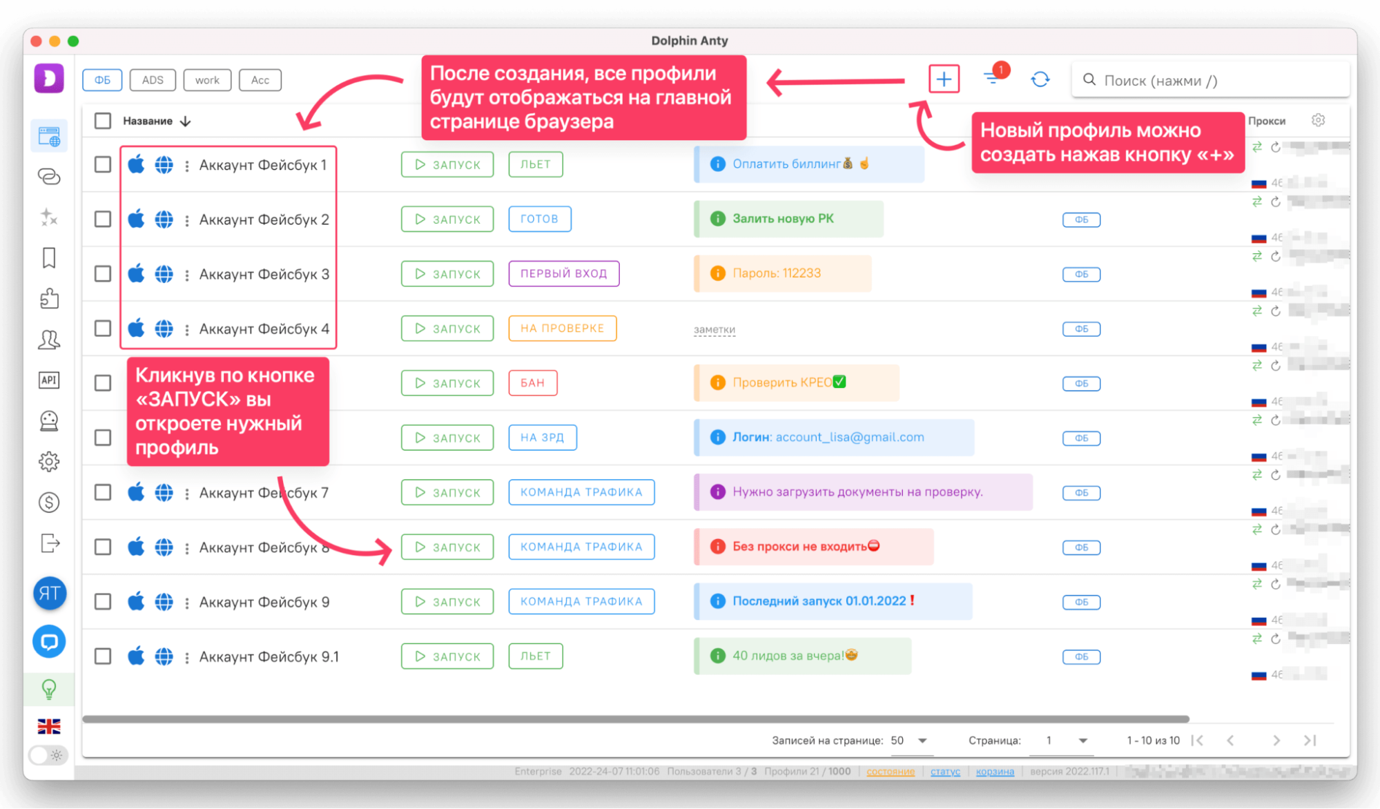 Подключение прокси — обязательный шаг для работы с Dolphin Anty. Пошаговый алгоритм, как создать профиль и настроить прокси: