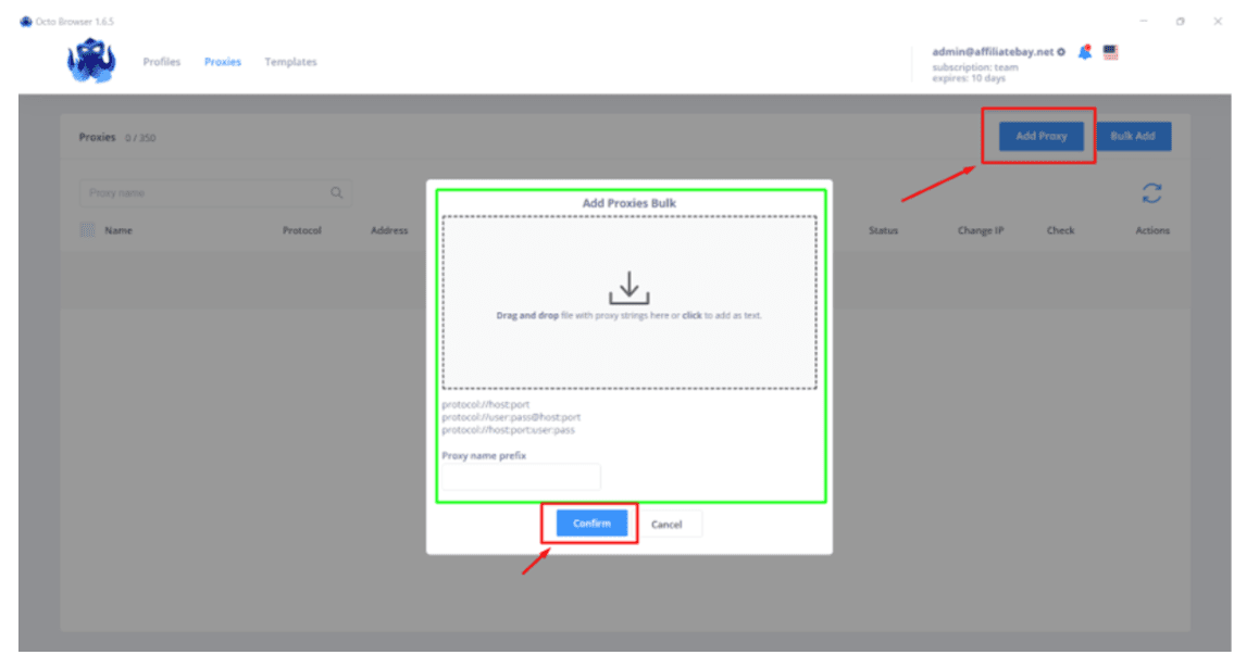 Вы также можете выбрать опцию «Массовое добавление». Перетащите их, заполните «Префикс имени прокси» и нажмите «Подтвердить».
