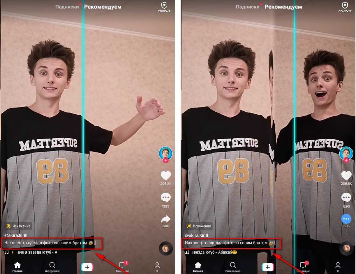 Слева — начало видео, справа — конец. В видео используется эффект искажения