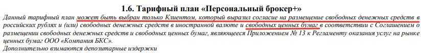 Дополнительные бонусы за подключенную услугу «овернайт». Это своего рода вознаграждение от брокера за возможность пользоваться Вашими активами, когда ему это будет удобно. Ваши активы для него – «как резерв». Из возможных вариантов бонусов. К примеру, у БКС некоторые тарифные планы доступны только для клиентов, выразивших согласие на размещение свободных денежных средств и свободных ценных бумаг в пользование брокеру. При этом суммарная стоимость активов на счете Клиента должна составляет не менее 3 млн. руб. и не снижаться. За это клиенты кроме особых комиссий тарифного плана получают общие информационно-аналитические материалы от сотрудника БКС по акциям российских эмитентов. Совсем недавно у этого же брокера для клиентов с подключённым «овернайт» отсутствовала комиссия за использование торгового ПО (сейчас комиссия присутствует при сумме активов на счете менее 30 тыс. руб.).