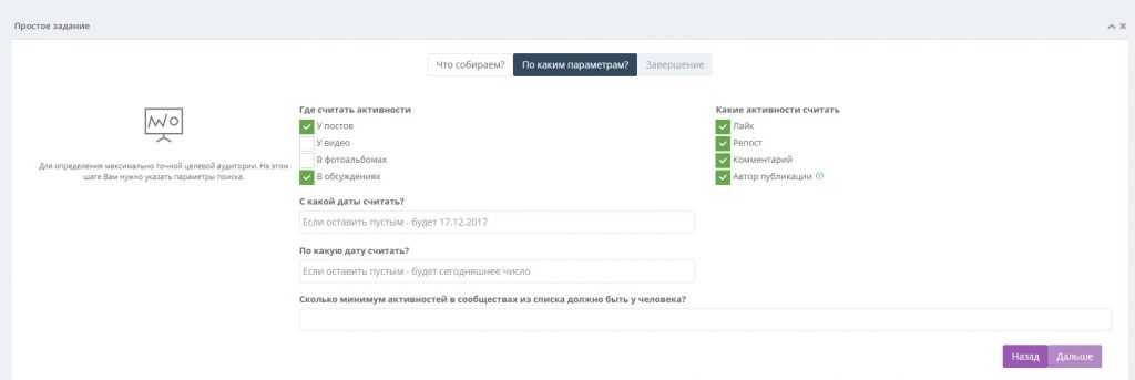 Подробнее о возможностях парсера, от поиска тематических сообществ до сбора ЦА, читайте в статье .