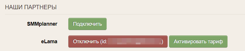 2. в разделе «Наши партеры» напротив Elama нажать кнопку «Активировать тариф»
