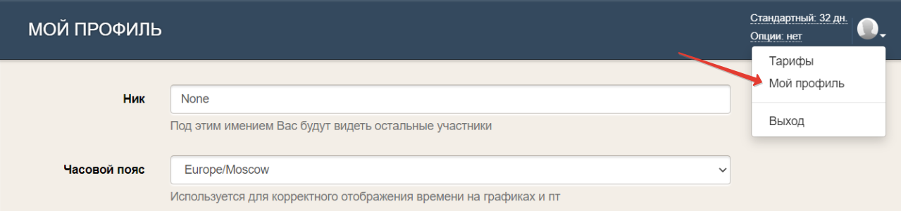 1. перейти в раздел «Мой профиль» в правом верхнем углу