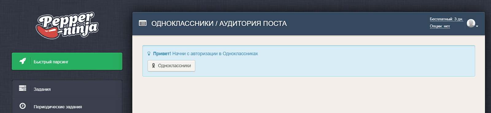 Автоматический парсер Pepper.Ninja работает с 4 социальными сетями: ВКонтакте, Facebook, Instagram, OK. Специализируется платформа именно на двух наиболее перспективных с точки зрения продаж соцсетях – VK и FB. Разберем основные функции парсера Pepper.Ninja.