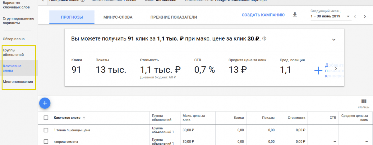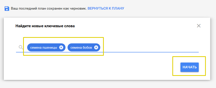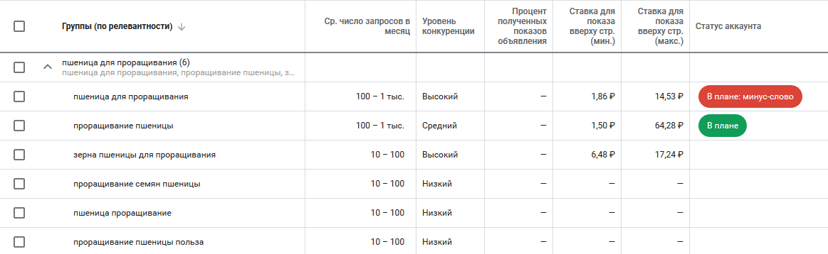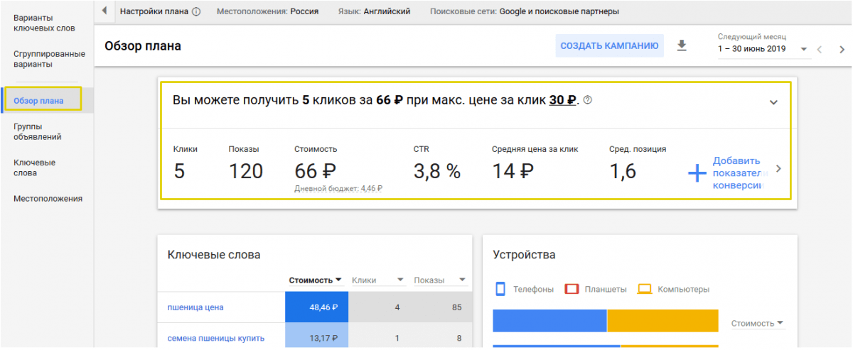 Можем переходить к обзору плана по отобранным ключевым фразам.