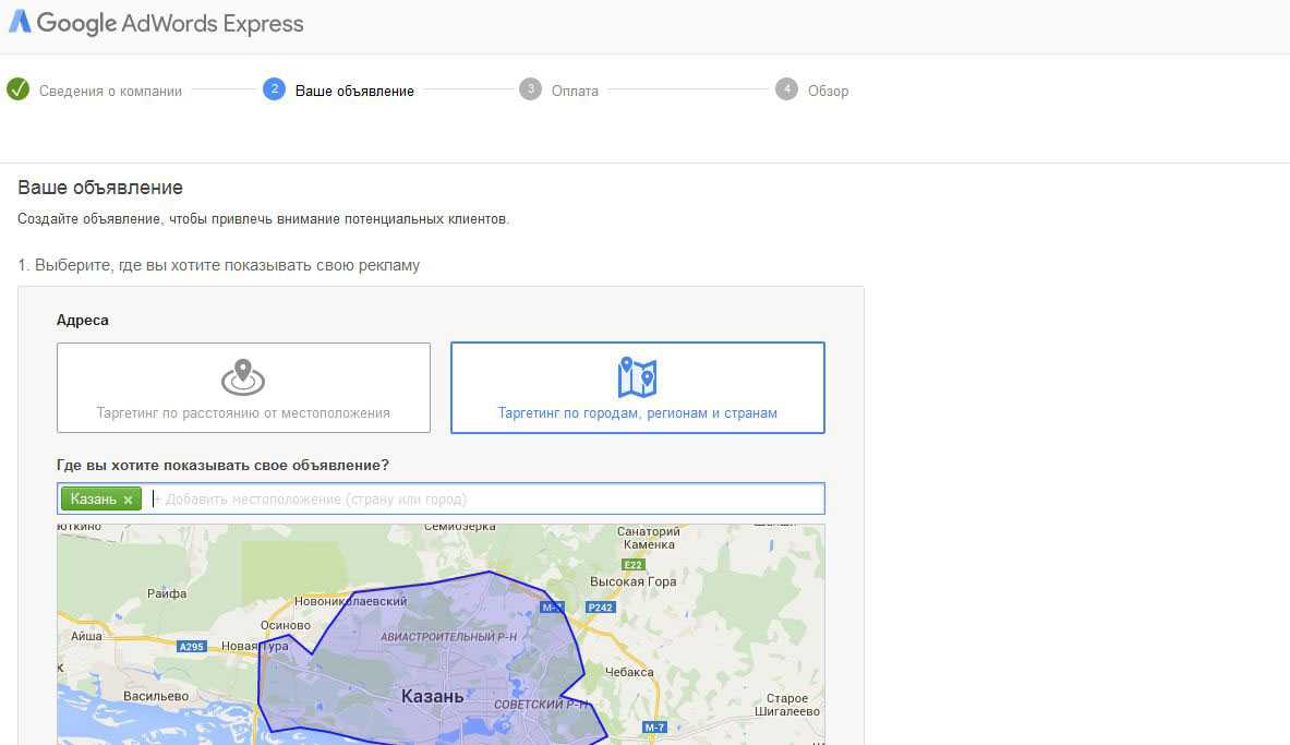 Google предложит вам использовать AdWords Express. Это облегченная версия, которая подойдет для тех, кто не хочет настраивать показ объявлений самостоятельно. Здесь можно создать рекламную кампанию буквально за несколько минут, например мне Google сразу указал географический таргетинг только на основе url сайта http://mediasimple.ru. Я не рекомендую использовать AdWords Express, поэтому переключайтесь на традиционный AdWords, который дает гораздо больше возможностей.