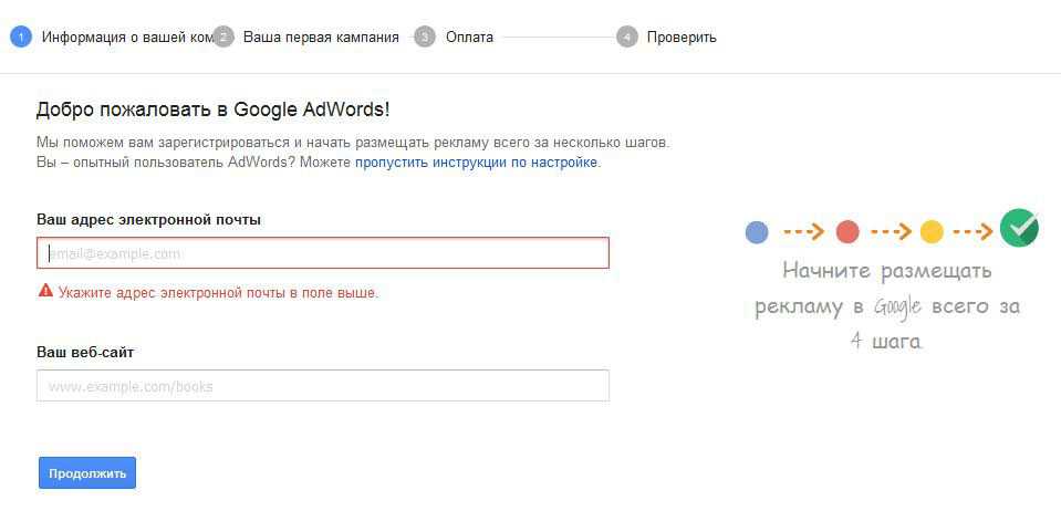 Поочерёдно рассмотрим оба способа и разберём реальный пример. Но для начала потребуется зарегистрировать аккаунт в Гугл Эдвордс. Зайдите на adwords.google.com