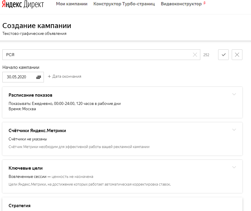 - Название кампании. Для продвижения одного проекта может потребоваться сразу несколько кампаний, поэтому сразу прописывайте удобные для распознавания имена. Например, можно использовать комбинацию «Продукт+Источник+ГЕО».