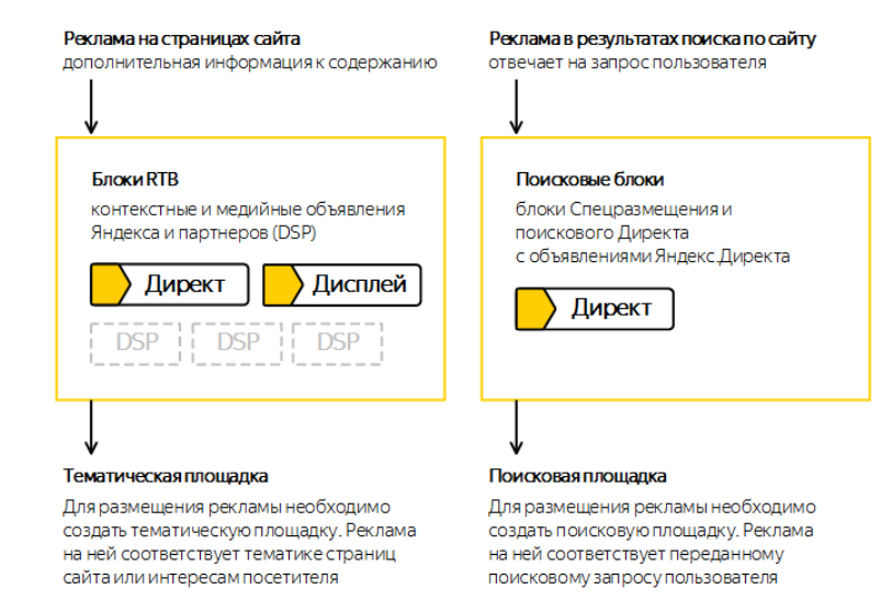 Рекламная сеть Яндекса (РСЯ) — это система размещения рекламы на сервисах Яндекса и площадках партнеров. Объединяет в себе различные Ресурсы, а также иные рекламные сети. РСЯ открывает рекламодателям Директа доступ к аудитории более чем 40 000 площадок: сайтов, мобильных приложений и приложений Smart TV. Партнеры Рекламной сети получают доход за размещение рекламы, а рекламодатели — приток трафика и клиентов.