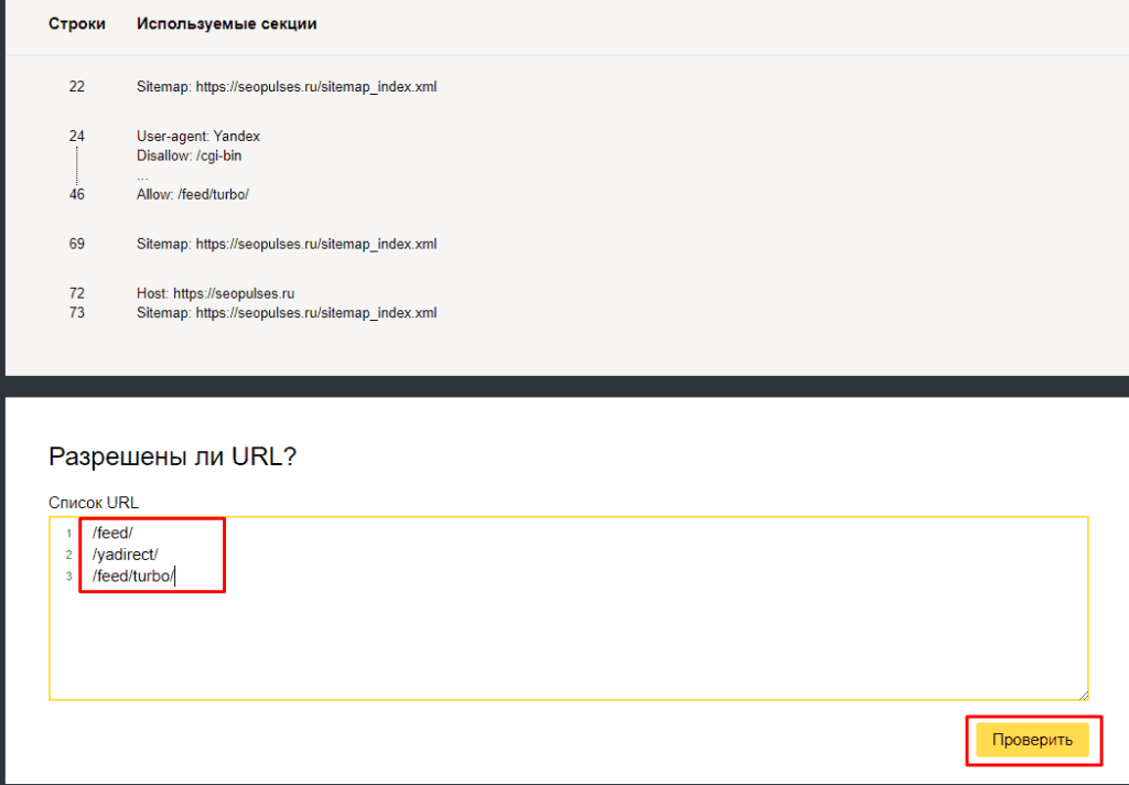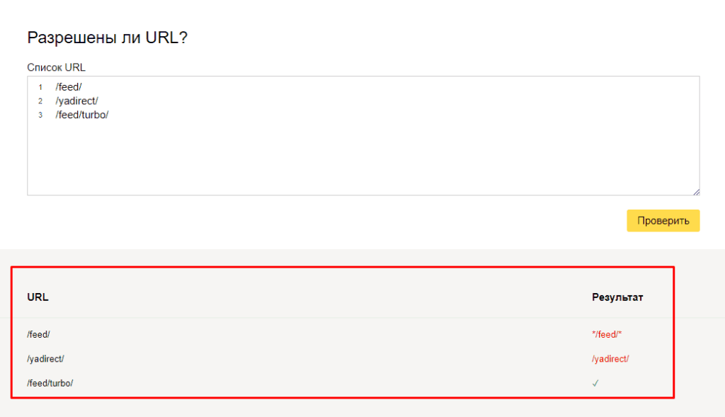 Чуть ниже имеется инструмент, который дает возможно проверить сразу до 100 URL на возможность сканирования.