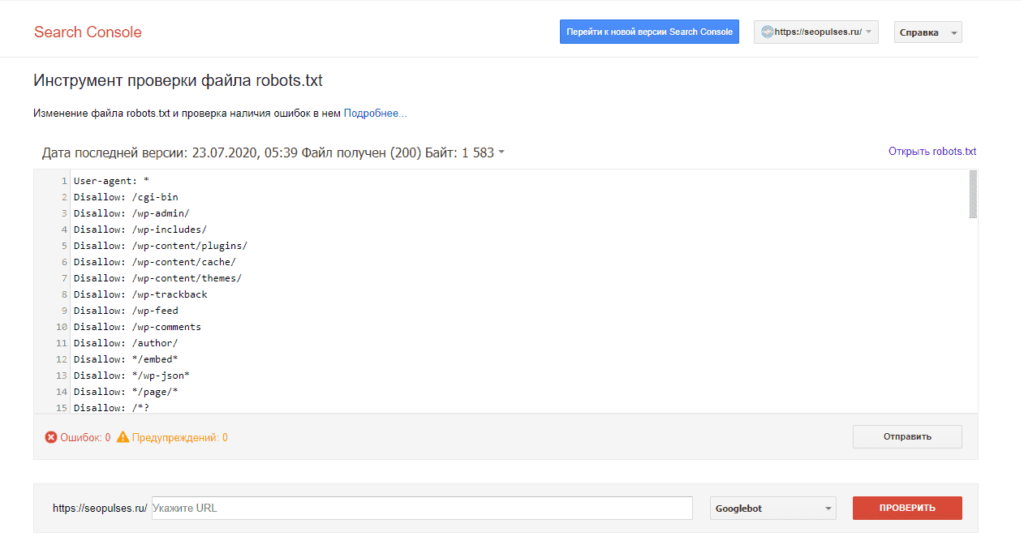 Проверка robots.txt в Яндекс вебмастере или с помощью инструментов Google. ( Если вы еще не зарегистрировались в сервисах для Вебмастеров — советую это сделать незамедлительно. )