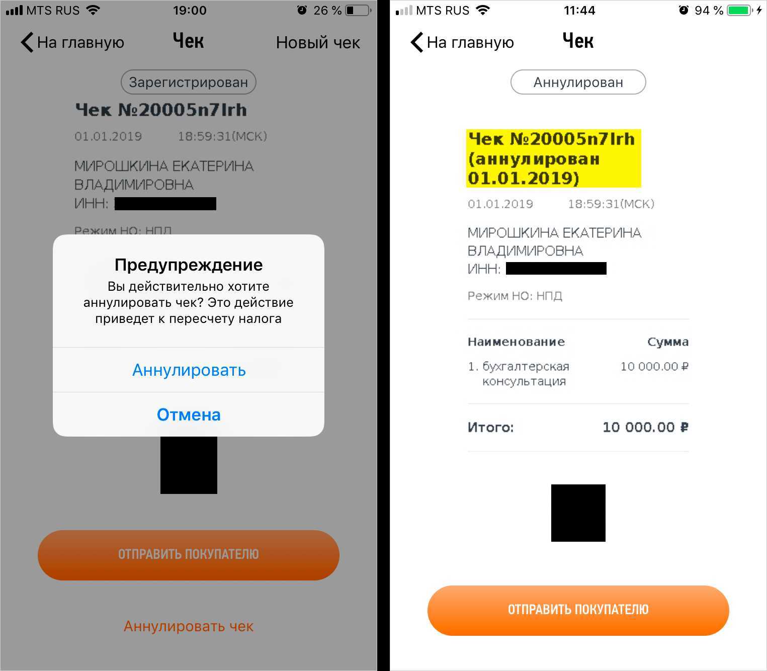 В обратной ситуации сумма налога будет возвращаться. Например, самозанятый аннулировал старый чек, вернул денежные средства заказчику, а налог уже заплатил. Приложение автоматически пересчитает сумму налога и отобразит переплату. При оплате следующего налогового периода эту сумму зачтут, и заплатить придётся меньше.