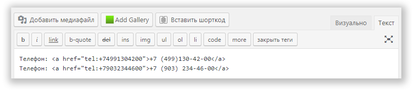 Теперь при нажатии на номер телефона будет совершаться набор указанного в ссылке номера. Именно тот, который указан в ссылке, а не в тексте, поэтому будьте внимательны! Проверяйте получившийся код в работе.