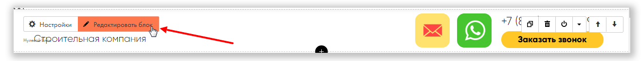 Переходим к редактированию блока, нажав на кнопку “Редактировать блок” в конструкторе нужной страницы: