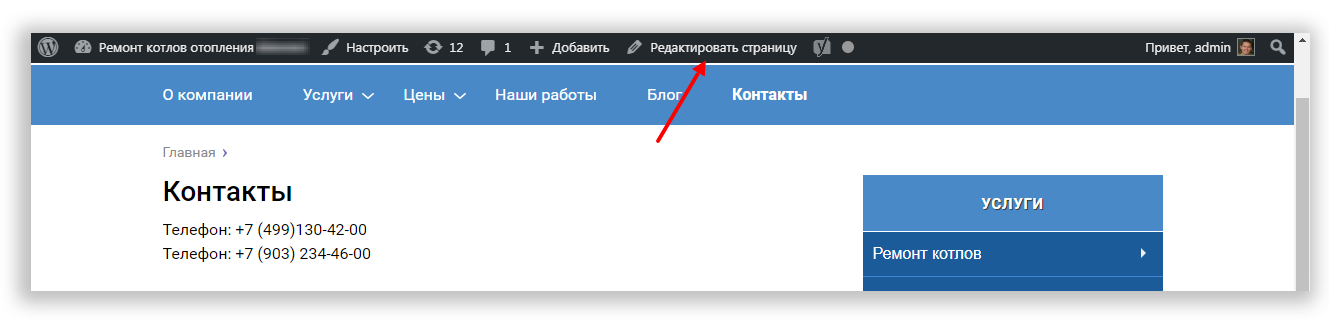 - Если телефон находится в записи, то переходим в редактор записи/страницы.