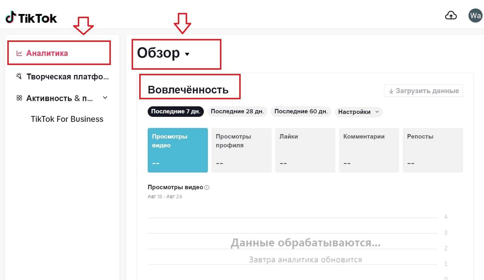 В этом разделе вы сможете отслеживать просмотры своего видео и профиля, а также количество подписчиков. Здесь вы можете просмотреть данные за последние семь или 28 дней.