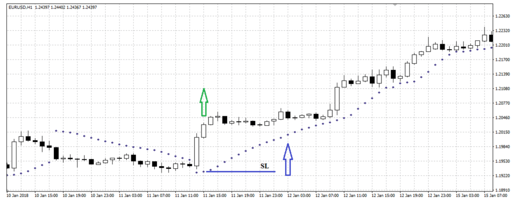Стоп-лосс на линии Parabolic SAR