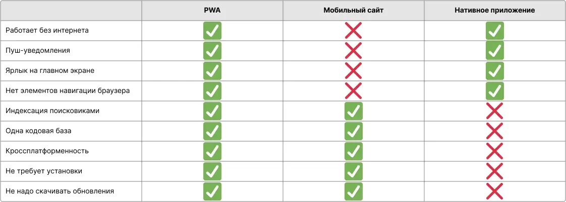 - Гибридные (PWA). Это, фактически, приложения под веб, адаптированные по экран мобильного устройства. Они открываются на смартфоне при помощи браузера.
