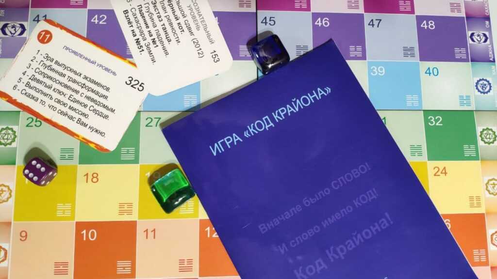 2. «Код Крайона» — метафорическая игра, направленная на самопознание через числовые комбинации. Количество участников — 8 человек, однако она не теряет свою эффективность и при участии одного игрока. Участниками выбирается единая цель, которую они будут преследовать. Цифры, выпадающие на кубике, обладают определённой энергетикой, отображающей жизненную ситуацию максимально точно. Карточки из набора направляют на дальнейшие действия в игре.