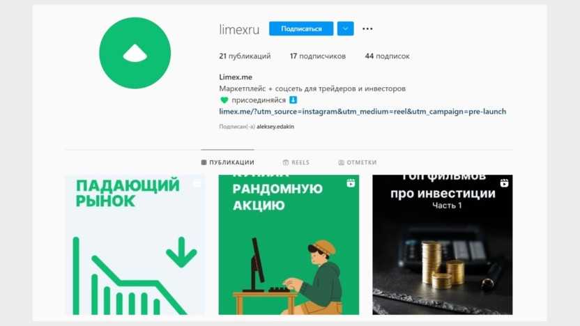 В целом, на рилсах можно начать базовое продвижение без бюджета – отслеживайте тренды, снимайте видео и получайте свою аудиторию. Например, так продвигается соцсеть для трейдеров Limex – выкладывает только рилсы и получает хоть и небольшой, но все-таки органический трафик.