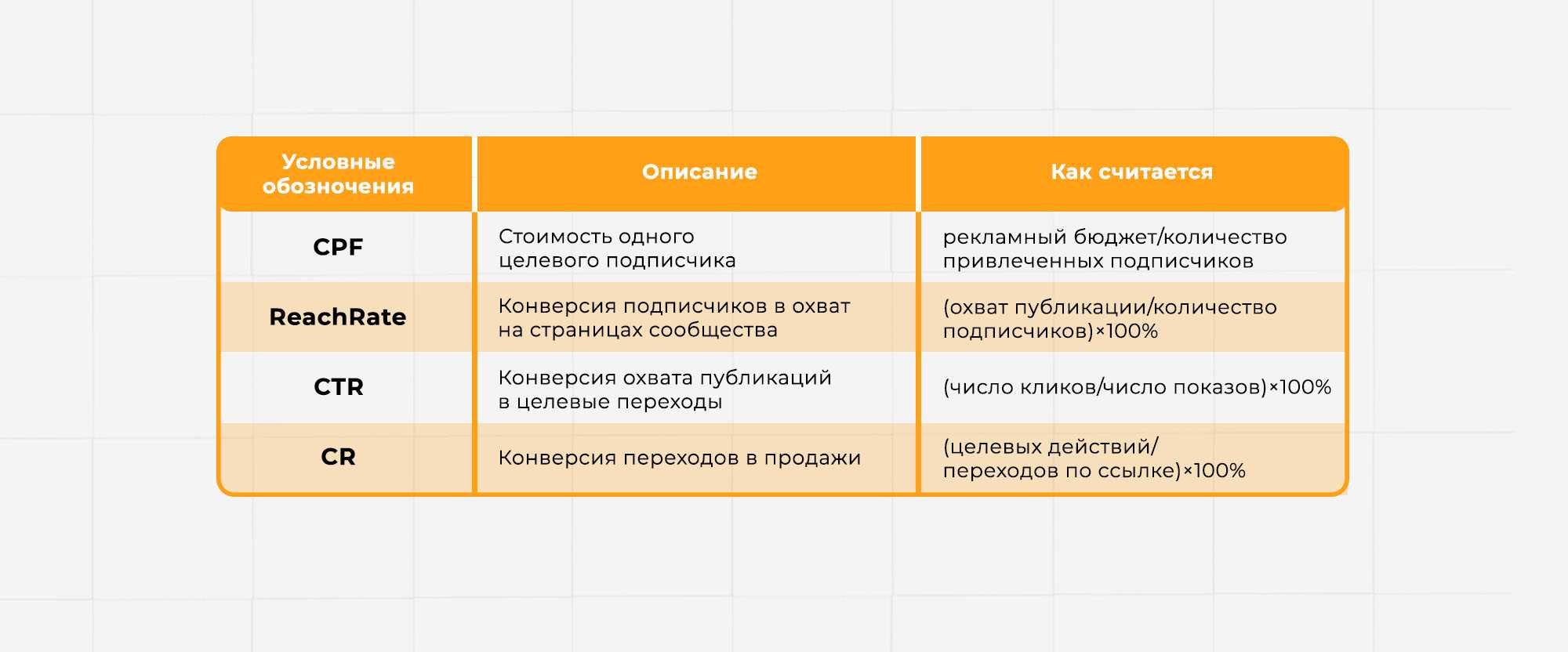 Одна из ключевых метрик для оценки качества привлечения новой аудитории — это цена подписчика (CPF), причем он должен быть целевым