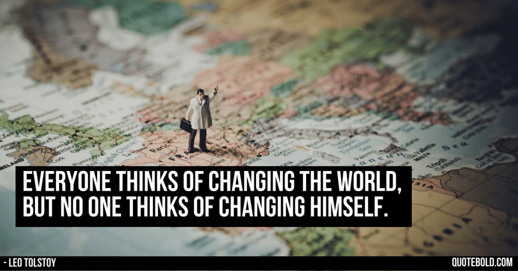 Легко указать на все, что, по вашему мнению, «должно» меняться вместе с миром. Гораздо труднее изменить себя. Возьмите на себя ответственность сегодня и поработайте над тем, чтобы сделать небольшой шаг в правильном направлении.