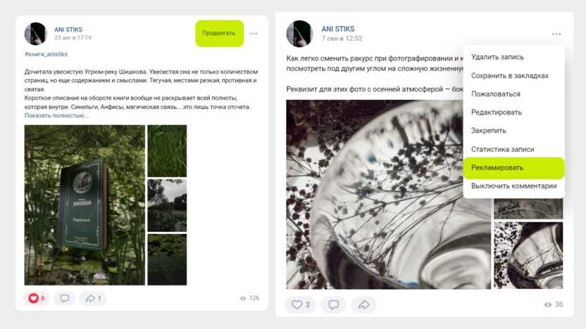 Также пост можно рекламировать – он будет автоматически отправлен в Рекламный кабинет для настройки таргета. Помните про новые требования к рекламе: никаких эмодзи в тексте и капслока, а на изображениях текста должно быть не более 20%.