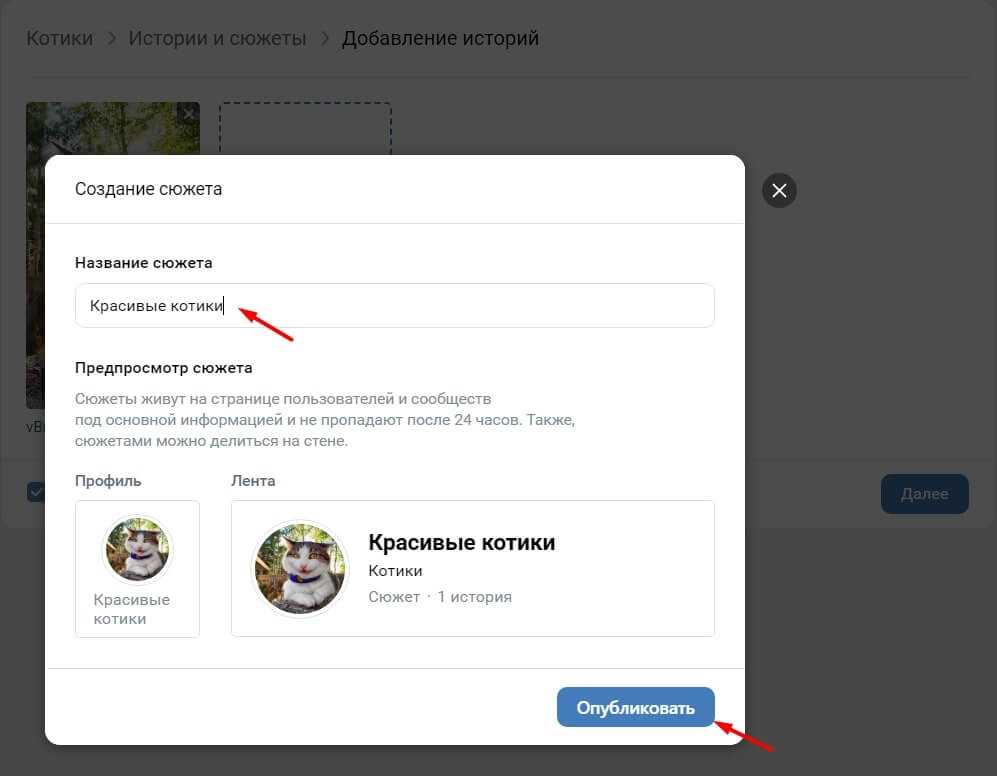 Введите название сюжета и нажмите на кнопку «Опубликовать».