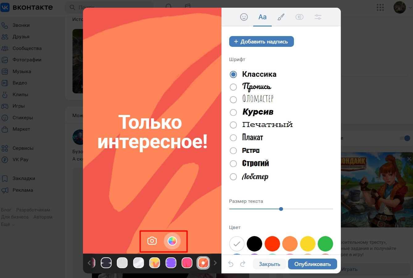 Вы перейдете в редактор, где сможете корректировать фото, добавлять надписи, ссылки, стикеры и другие элементы. После внесения необходимых изменений нажмите на кнопку «Опубликовать».