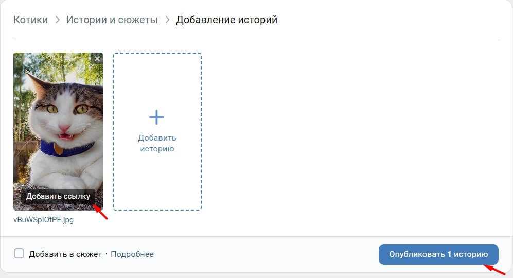 Добавьте при необходимости ссылку, нажмите на кнопку «Опубликовать 1 историю»