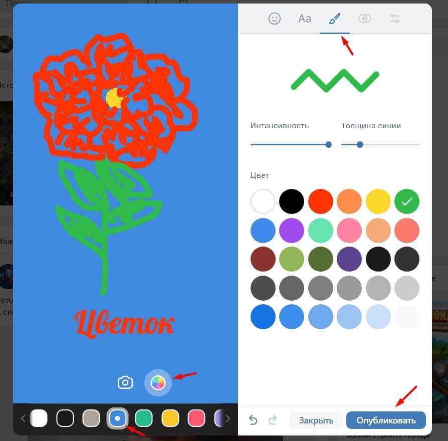 После всей проделанной работы не забудьте нажать «Опубликовать», а если передумали, то «Закрыть». Готово, теперь вы умеете добавлять сторьку и с пк.