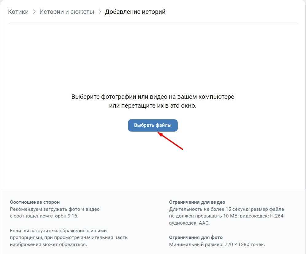 Кликните по кнопке «Выбрать файлы», загрузите фото или видео с компьютера.