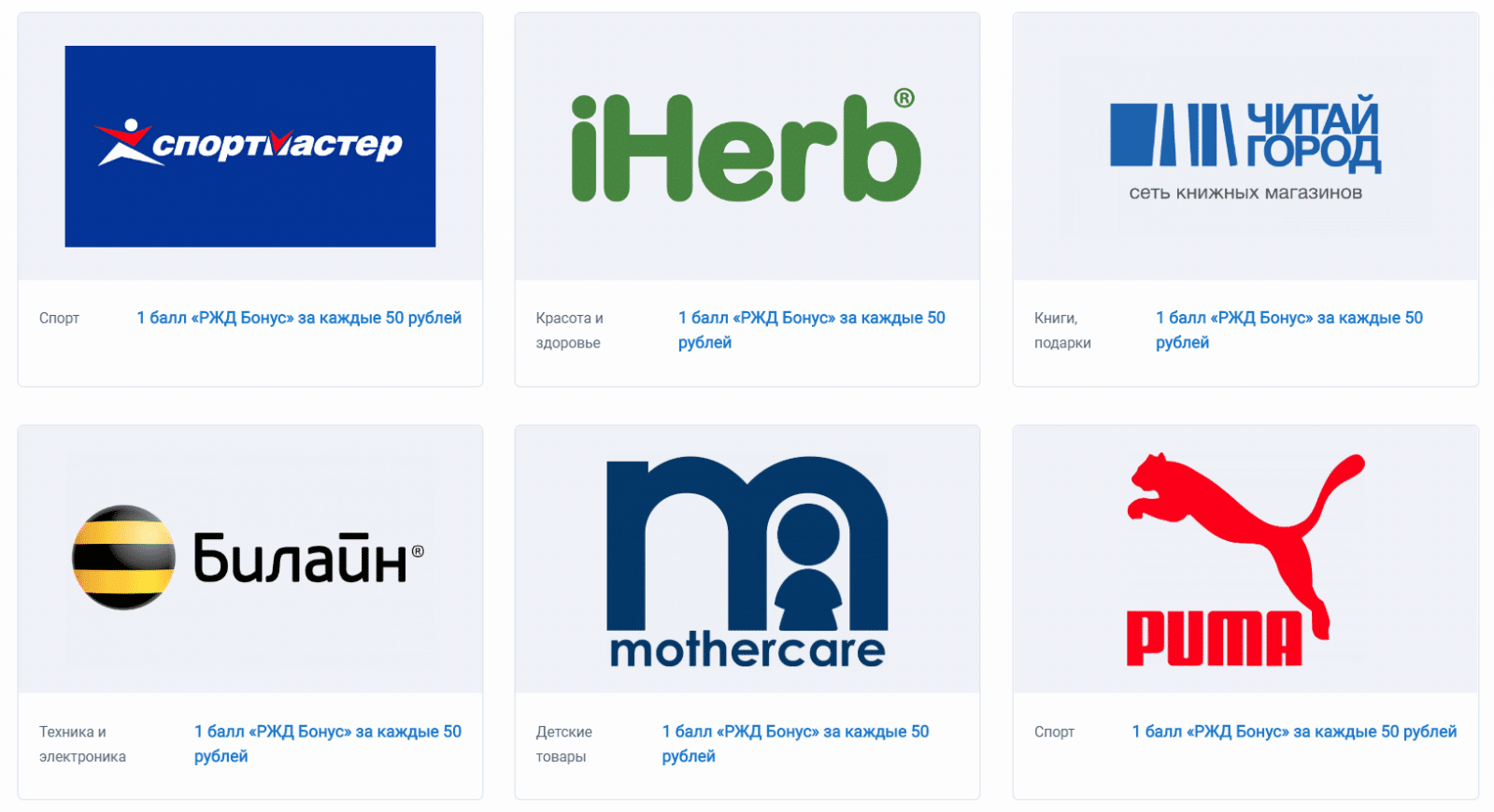 Важно! Получить баллы можно за поездки в поездах фирменного следования АО «ФПК», Сапсан, Ласточка или ДОСС ОАО РЖД. Получить больше баллов можно при оплате покупок в магазинах партнерах