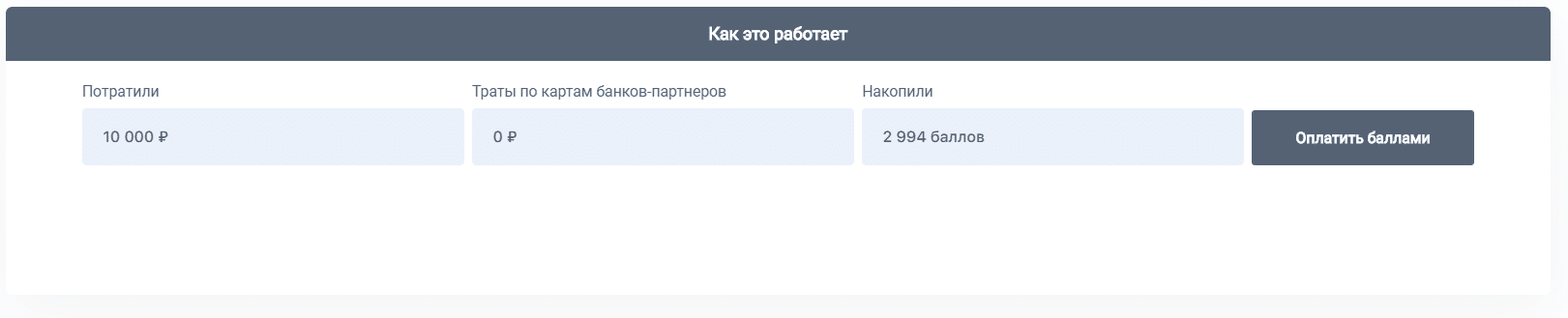 Баллы участнику программы насчитывают на протяжении двух недель месяца, который следует за отчетным. Кэшбек начисляют и банки, и железная дорога: первый – за расходные операции с картой, второй – за оплату поездок. Магазины и сервисные центры партнерской сети есть не только в РФ, но и заграницей. Если за месяц потратить 30 тыс. руб., то можно получить 1000 баллов.