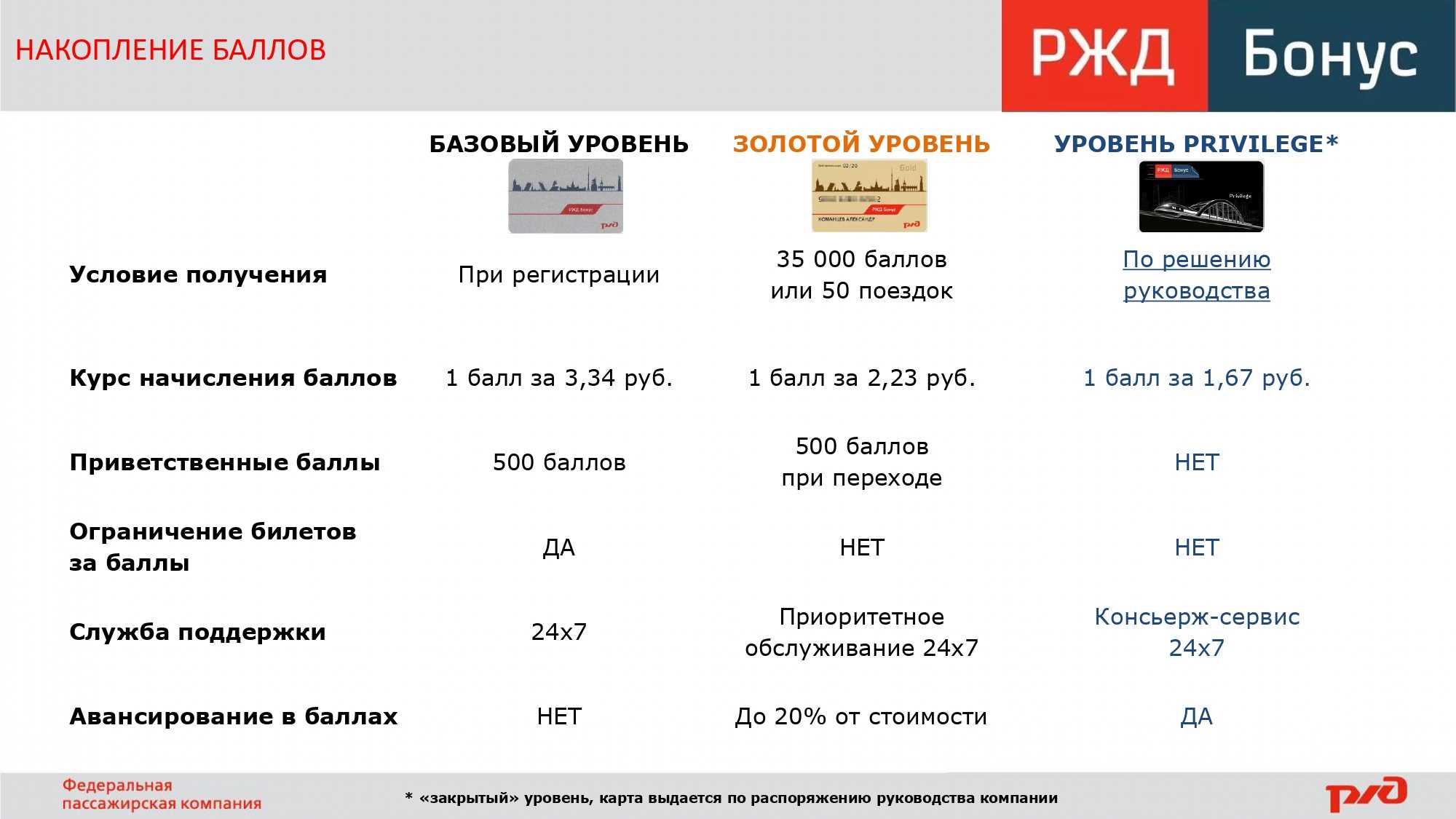 - отсутствует возможность оформления проездного документа за бонусы в плацкарт или вагон сидячего типа кроме исключений, к которым относятся Сапсан, Ласточки, невский экспресс и Стрижи;