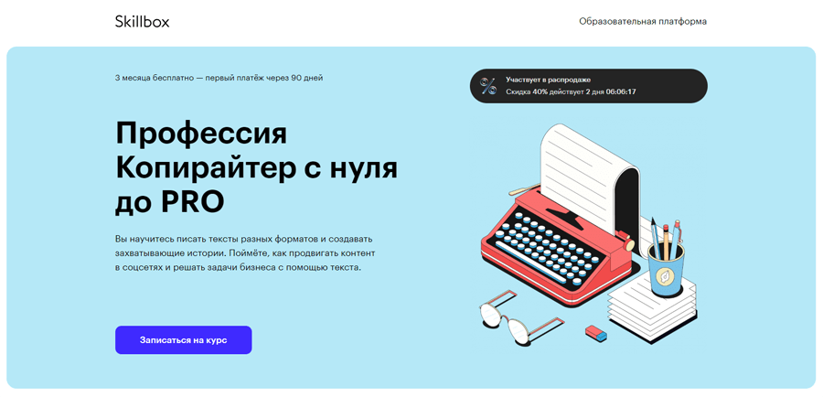 №1. Профессия Копирайтер PRO от Skillbox